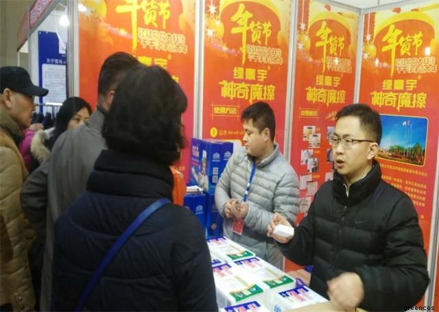 濮陽綠宇泡綿有限公司作為”濮陽市優秀電商企業”代表受濮陽市商務局邀請參加了本次年貨博覽會。作為年貨博覽會中非常新奇的面孔——“神奇魔擦”剛一亮相,前來置辦年貨的老百姓就圍滿了展位,最多的問題就是:“這是什么的東西”,“這不就是海綿嗎”,“擦得這么干凈什么原理”……面對這些問題我公司銷售人員耐心解答、用心演示,用滿腔熱忱化解老百姓的諸多疑惑。為起到更大的宣傳作用,我公司銷售員一會在展位上吆喝產品、一會跑到過道贈送試用品、一會在連廊處發放宣傳頁,一會又趕緊回展位演示、講解,緊緊一個上午幾個銷售員嗓子就沙啞了起來……廢寢忘食的努力若能為了換來顧客的認可就是銷售員最好的年貨,就像一位顧客試用完產品后對著我們說:“小伙子,你們的產品還真是:輕輕松松大掃除,干干凈凈過大年!”